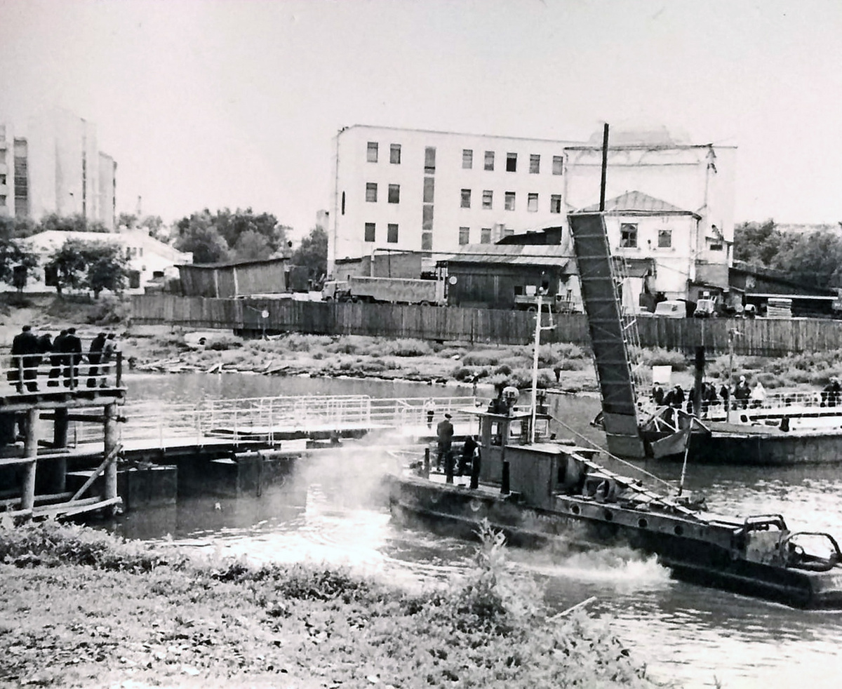 Понтонный мост через реку Вологду у ресторана «Чайка», 1980 год