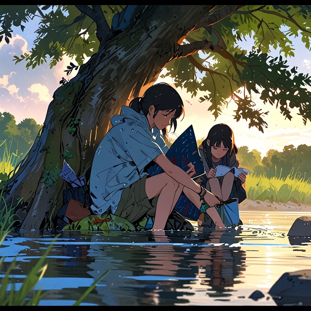 Сергей не любил ветер. Особенно такой — порывистый, настырный, выдувающий все мысли из головы. Он злился, натягивая капюшон, и спотыкался о корни, неся удочки к реке. — Идеальное утро для рыбалки, — проворчал он, разматывая снасти. Река бурлила, подбрасывая белые гребешки волн. И вдруг — пятно спокойствия. На поваленном дереве сидела девушка. Ветер трепал её светлые волосы, но она будто не замечала, уткнувшись в книгу. — Ты... не замёрзнешь? — крикнул Сергей через шум ветра. Девушка подняла глаза. Зелёные. Как листва после дождя. — Хуже будет книге, — она прижалa потрёпанные страницы к груди. — «Гроза» не любит воду. Он рассмеялся. Так странно — смеяться, когда ветер рвёт из рук удочки. — Давай устроим баррикаду, — предложил Сергей, доставая из рюкзака походный плед. Они закрепили его между двумя деревьями, создав укрытие. Теперь ветер лишь шевелил край ткани, а книга была в безопасности. — Я Аня, — представилась девушка, отодвигаясь, чтобы дать ему место. — Сережа. Ты... часто читаешь