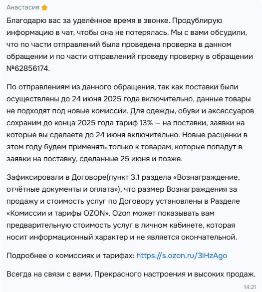 Комиссии Ozon: понижаем… но не всем Служба поддержки Ozon уточнила: пониженные комиссии на одежду (13%) действуют только для поставок, оформленных после 24 июня 2025 года. Если товар привезли раньше — плати по старым, более высоким ставкам. Получается: — Повышать комиссии — можно сразу для всех. — А понижать — только тем, кто начал возить с «правильной» даты. Странная логика: вроде как продавец тот же, категория та же, но условия — разные. Ну да, кто раньше привёз — тот и переплатит. Отгрузил до 24 июня? Извини. Оформи заявку после — молодец, тебе скидка. Marketplace_biz - отдай свой буст каналу