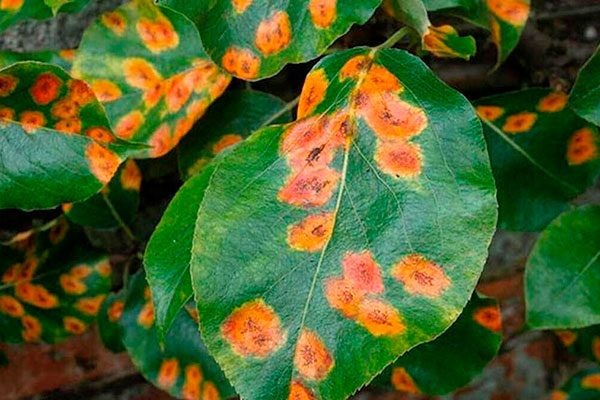 Характерными признаками ржавчины являются угловатые бледно-жёлто-зелёные пятна на обеих сторонах листьев. Со временем они становятся ярко-жёлтыми, а с нижней стороны формируются оранжево-красные споры гриба.