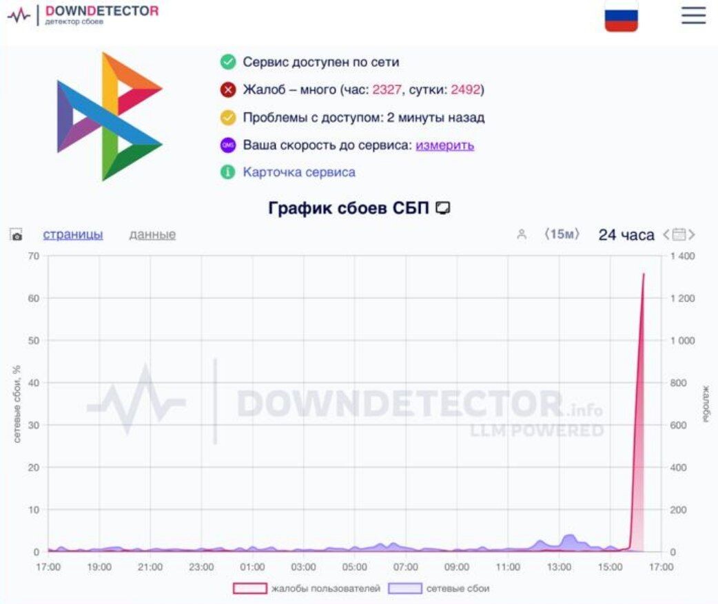 💳СБП упала Фиксируется большой и резкий всплеск жалоб на работу системы быстрых платежей. В соцсетях пользователи жалуются, что не могут перевести средства или оплатить счета по СБП. Под раздачу попали и банки, на их работу тоже появляются жалобы, но в контексте работы СБП. В НСПК, которая является разработчиком и оператором системы, подтвердили наличие проблем: «Из-за инцидента на стороне провайдера мы фиксируем увеличение времени обработки операций по СБП. Мы сообщим дополнительно, когда все сервисы вновь начнут работать в штатном режиме».