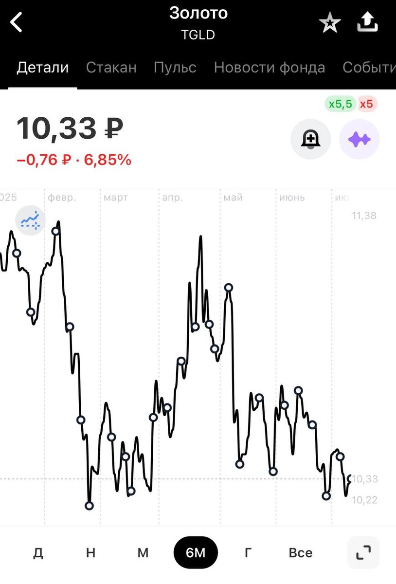 Продолжаю еженедельно докупать #фонд $TGLD на #иис , чтобы довести долю до планируемых 5% портфеля