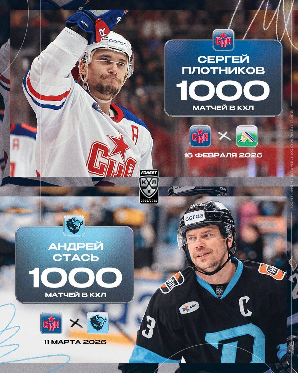 Пополнение в клубе «Тысяча матчей в КХЛ»: в сезоне 2025/2026 Сергей Плотников ⭐️ и Андрей Стась 🦬 отпразднуют на льду свои большие юбилеи
