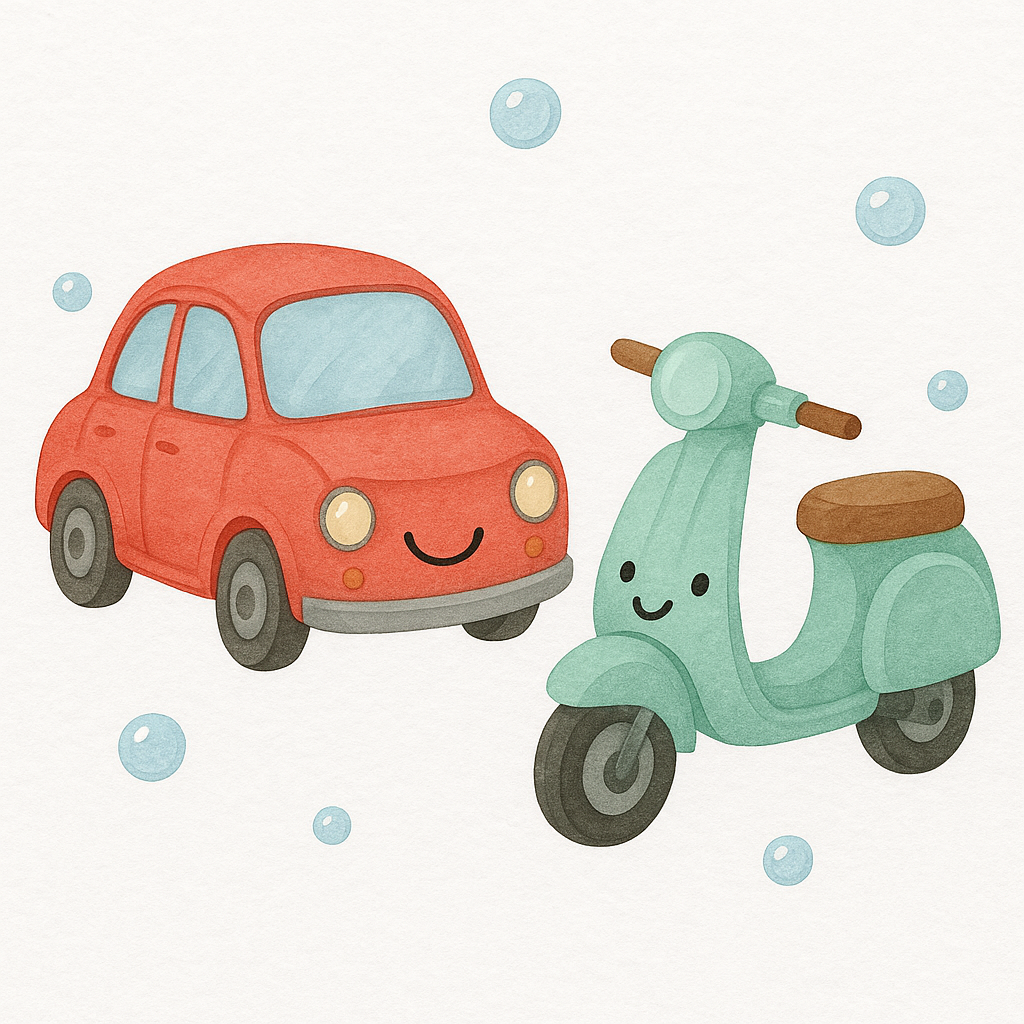 МАШИНКА И СКУТЕР Жила-была Машинка очень симпатичная во всех отношениях. Она всегда была чисто вымытой и аккуратной: и по улицам ездила очень аккуратно, и правила дорожного движения знала назубок. Даже полицейские иногда восхищались: «До чего же симпатичная машинка! Как замечательно она соблюдает все правила!» А от полицейских такое нечасто услышишь. Однажды в гараже, где жила Машинка, появился Скутер. Новенький, блестящий и очень весёлый. Машинка обрадовалась и вежливо поздоровалась с новым соседом. − Привет, старая калоша! − воскликнул Скутер. − Придётся тебе подвинуться и уступить мне место у ворот, потому что я теперь здесь главный! Завтра я впервые отправлюсь путешествовать по дорогам! − А ты знаешь правила движения? − спросила его Машинка, проглотив обиду. − Ведь для того, чтобы ездить по дорогам, нужно знать правила. − Зачем мне правила, я могу ездить везде, где захочу, −заявил Скутер. − Я маленький, юркий и проеду там, где ты, старая калоша, застрянешь! − Ох, −