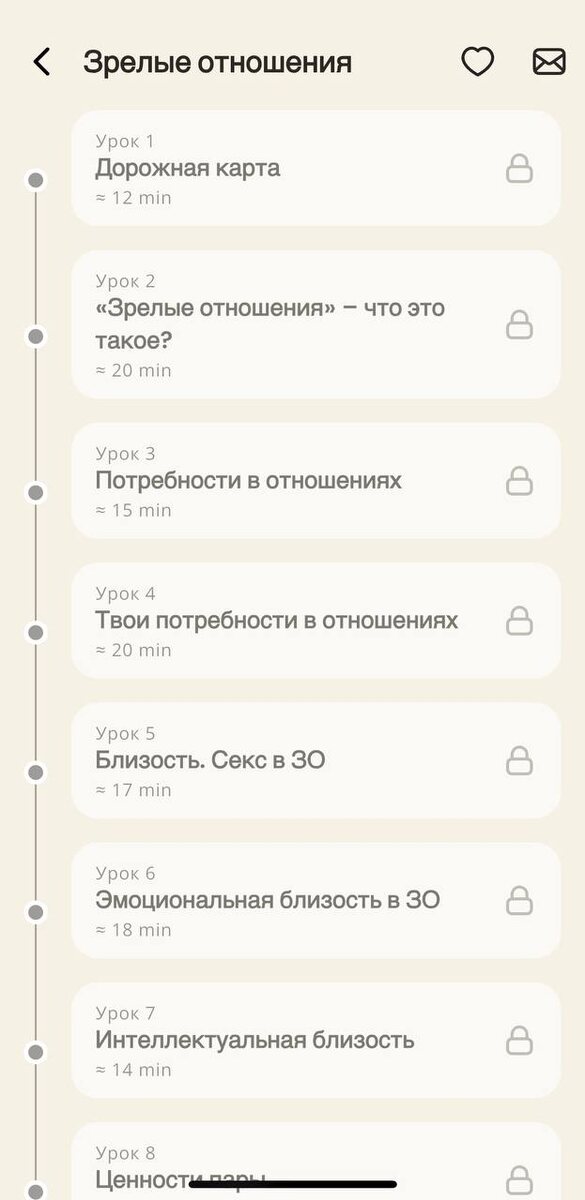 Обещали тебе рассказать об этом... На этих 7 равноценно важных элементах строятся здоровые отношения: 🔗 Общение (мы с тобой уже начали его потихоньку внедрять) 🔗 Близость 🔗 Вложения 🔗 Ответственность 🔗 Баланс общего и личного 🔗 Командность 🔗 Совпадение в убеждениях Каждый из этих элементов — навык. А значит, его можно развивать — в себе и в отношениях. Именно для этого мы создали программу самотерапии «Зрелые отношения» — 31 день практики. Посмотри содержание на скринах выше ;) Самое крутое — курс подходит как для тех, кто уже в отношениях, так и для тех, кто сейчас один, но хочет, чтобы следующая история любви была по-настоящему зрелой и счастливой. ⬇️ А ТЕПЕРЬ — ЛОВИ МОМЕНТ ⬇️