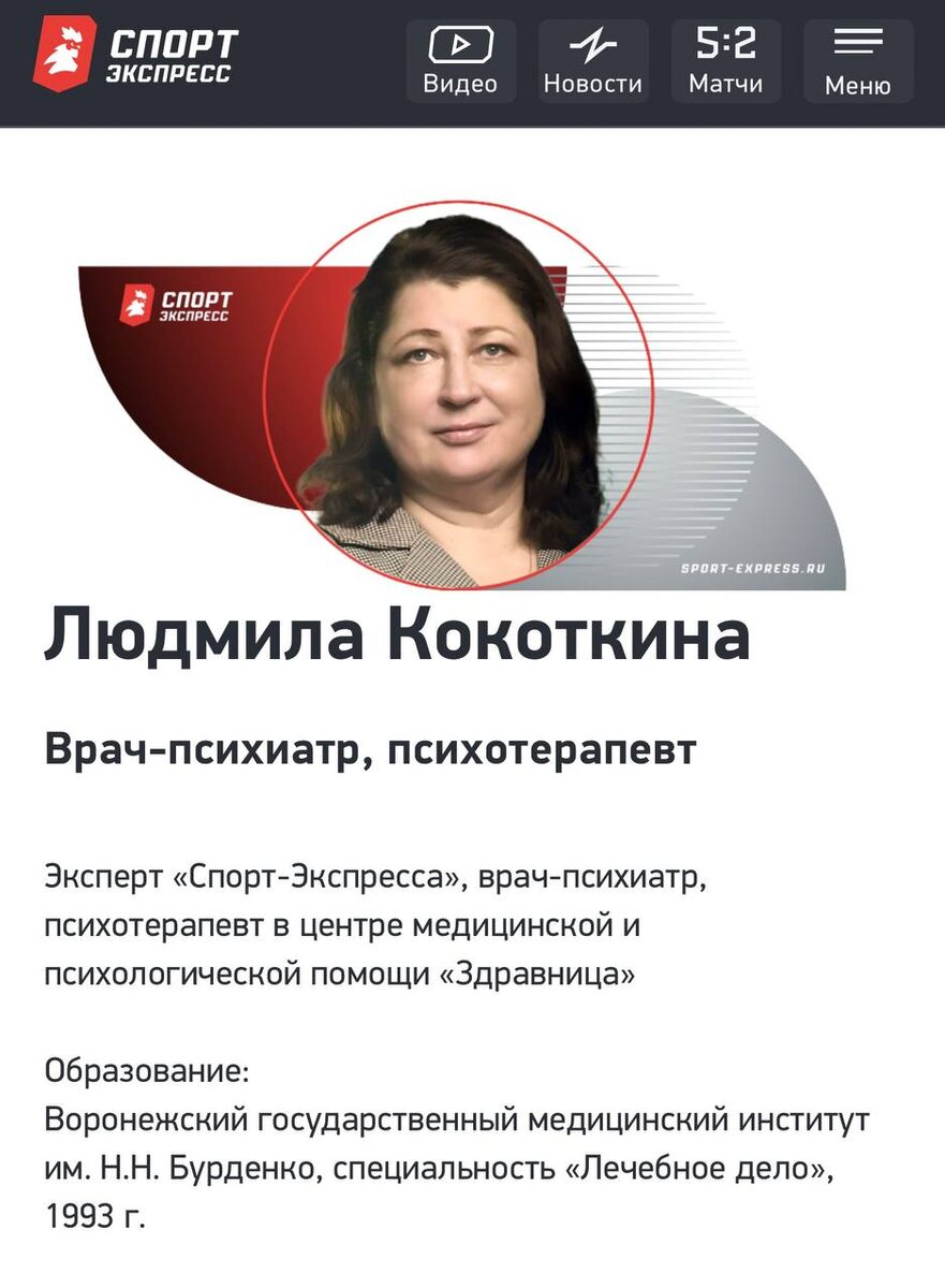 Вышла долгожданная статья в газете «Спорт-экспресс» с комментариями психиатра центра медицинской и психологической помощи "Здравница"