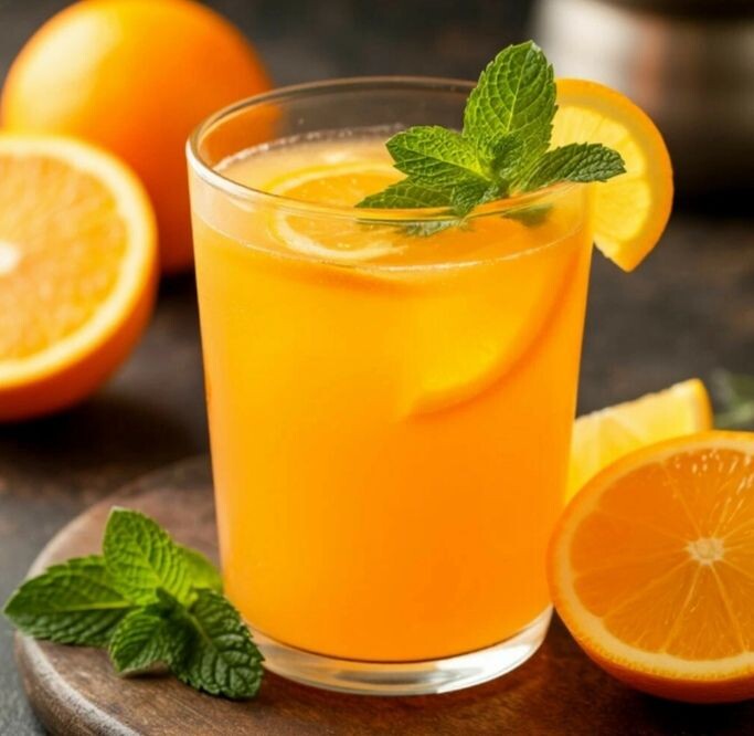 Не знаю как у вас, у нас жара за тридцать, поэтому хочется чего-нибудь освежающего и побольше. Для такого случая у меня есть замечательный рецепт лимонада, которым я делюсь с вами Этот лимонад не только вкусный и освежающий, но еще и экономный. На два литра лимонада необходимо: Когда готовишь по этому рецепту, лимонад получается ароматный, с ярко выраженным ароматом апельсина. Такой не получится если просто выжать сок двух лимонов и развести водой. Для начала нужно как следует вымыть апельсины. Не знаю правда это или нет, но говорят, что для сохранения апельсины покрывают каким-то средством, то ли воском, то ли еще чем-то. Поэтому на всякий случай я мою апельсины с хозяйственным мылом и тру как следует щеткой. Потом вытираю насухо и кладу в морозилку до замерзания. Это нужно для того, чтобы цедра апельсина не горчила. Как только апельсины замерзнут, вынимаю их и размораживаю. "Попки" отрезаю и режу на кусочки. Складываю в форму, доливаю немного воды, чтобы было проще перебить погружным