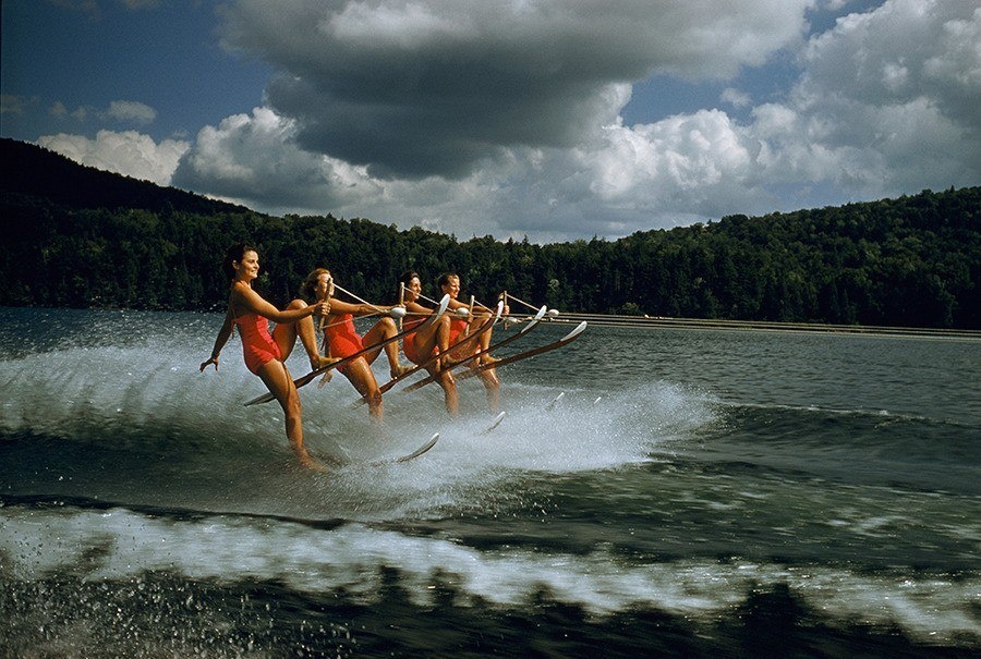 Женская команда по водным лыжам на озере в штате Нью-Йорк, 1956. Фотограф Роберт Сиссон