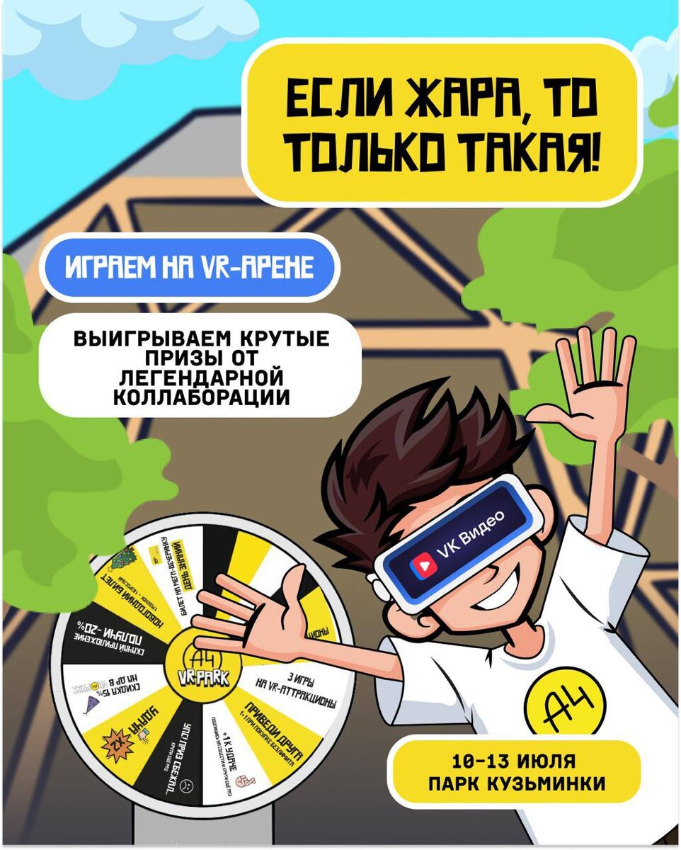 Эй, ребята! А4 VR PARK снова в деле — и мы снова заходим в Природно-исторический парк «Кузьминки-Люблино»! Да-да, вы не ослышались! Зачем сидеть дома, когда можно погрузиться в мир виртуальной реальности и охладиться в парке? 🌳💦 Это будут самые жаркие выходные лета — и не только по температуре! Мы создадим атмосферу, где легко совместить приятное с полезным. А ещё у нас для вас крутые призы от А4 VR PARK и VK! Не упустите шанс — крутите колесо фортуны и получайте по-настоящему классные подарки! 🎡 🚀 И, конечно, вас ждут бесплатные игры на нашей VR-арене! Так что собирайте друзей, берите хорошее настроение — и готовьтесь к незабываемым приключениям. Не пропустите — это будет огонь! 🔥🔥🔥 Ждём вас в Природно-историческом парке «Кузьминки-Люблино» с 10 по 13 июля! Мы будем здесь !