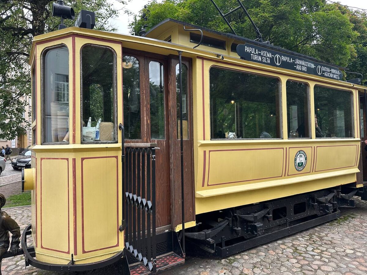 В Выборге есть такой интересный кофе-вагон трамвай. Локация классная, а кофе — так себе.