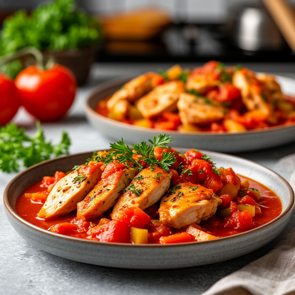 Когда хочется приготовить что-то простое, но при этом сытное и ароматное, курица, тушеная с овощами в томатном соусе, становится настоящим спасением. Это блюдо сочетает в себе нежность мяса и насыщенность свежих овощей, а томатный соус придаёт всему особую кисло-сладкую нотку, которая пробуждает аппетит и создаёт атмосферу домашнего уюта. Почему стоит выбрать курицу с овощами в томатном соусе? Это отличный вариант для тех, кто предпочитает простые и полезные ужины. Блюдо не требует много времени или сложных техник, а результат всегда радует - сочное мясо, мягкие овощи и ароматный соус. Кроме того, вы можете использовать любые сезонные овощи, что делает рецепт универсальным и подходящим для любого времени года. Курица - источник белка, а овощи добавляют витамины и клетчатку, что делает ужин сбалансированным и полезным. Томатный соус, приготовленный из натуральных ингредиентов, не только вкусен, но и богат ликопином - мощным антиоксидантом, который помогает поддерживать здоровье сердца и
