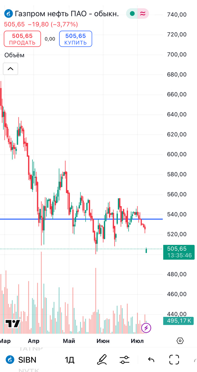 Сегодня Газпромнефть снизилась на 3%, решила этим воспользоваться! 🛒 Купила - Количество: 2 шт. - Цена за шт.: 505,85 ₽ - Общая сумма: 1 011,70 ₽ ❓ Почему она - Надежная компания с хорошими дивидендами - После снижения цена выглядит привлекательно - Хочу добавить в долгосрочный портфель больше див.акций крупных компаний Как думаете -3% хороший вход или стоило подождать ниже? ⠀⠀ Не ИИР