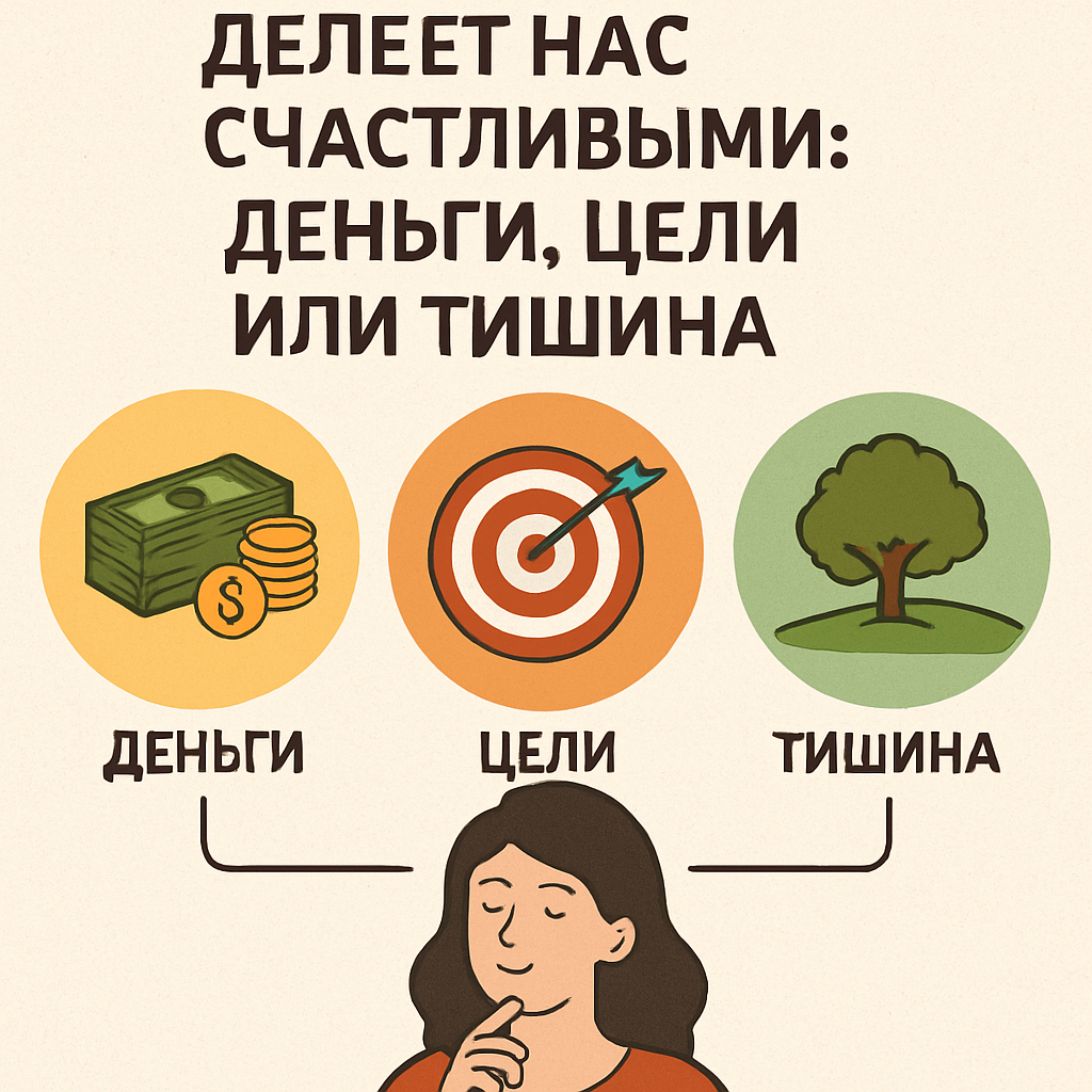 🔍 Что на самом деле делает нас счастливыми: деньги, цели или тишина? Счастье — понятие странное. Его не купишь в магазине, не поймаешь руками, не удержишь навсегда. Но мы всё равно ищем его каждый день. Вопрос — где? 💰 Деньги Многие думают, что деньги = счастье. И это частично правда. Когда человек не может оплатить жильё или купить еду — о каком счастье может идти речь? Но исследования показывают: после определённого уровня дохода (достаточного для комфорта), дополнительные деньги уже не делают нас счастливее. Мы просто привыкаем. 🎯 Цели Есть мнение: чтобы быть счастливым, надо постоянно к чему-то стремиться. И правда — цель даёт ощущение смысла, особенно если она важна лично для тебя. Но здесь есть ловушка: достиг цель — и… пустота. Счастье часто было не в самой цели, а в пути к ней. И если мы не умеем радоваться дороге — цели не спасут. 🤍 Тишина Многие замечают: самые счастливые моменты — не в буре событий, а в покое. Когда ничего не отвлекает. Когда ты сидишь с