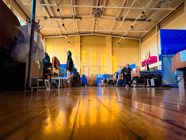Нестеренко говорит еще об одной проблеме – освещении в ПВР. В спортзале установлены прожекторы для спортивных соревнований. Осенью и зимой, когда темнеет рано, этот свет становится пыткой для неходячих стариков. «Все, что они могут, – лежать и смотреть в потолок, а это как сваркой по глазам. Закрываются кто полотенцем, кто кепкой...»