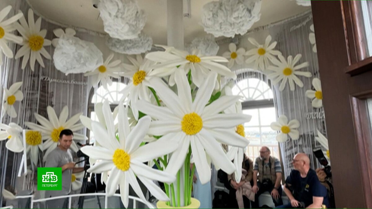 [ Смотреть видео на сайте НТВ ] В честь Дня семьи, любви и верности смотровую площадку на Думской башне украсили огромными ромашками — главным символом праздника. От живых цветов в этот раз решили отказаться, чтобы украшения радовали посетителей дольше. Декораторам пришлось непросто. Поднимать материалы пришлось пешком, проходя каждый раз по 233 ступеньки вверх. Эти ромашки будут радовать петербуржцев и туристов до конца июля. [ Смотреть видео на сайте НТВ ]