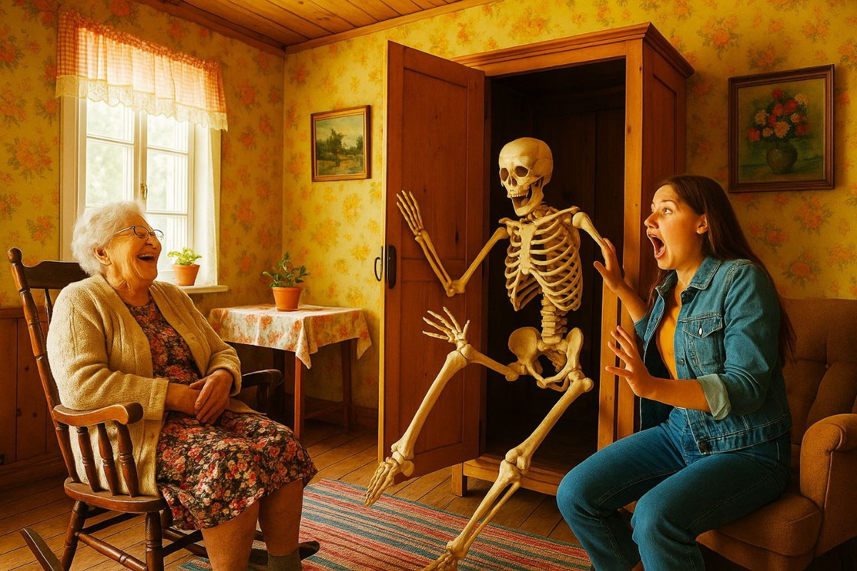 И в этот момент, как назло, в открытую дверь заглянула соседка Валентина Петровна — вечно дежурящая у занавески. Она, конечно, всё увидела. Особенно скелет.