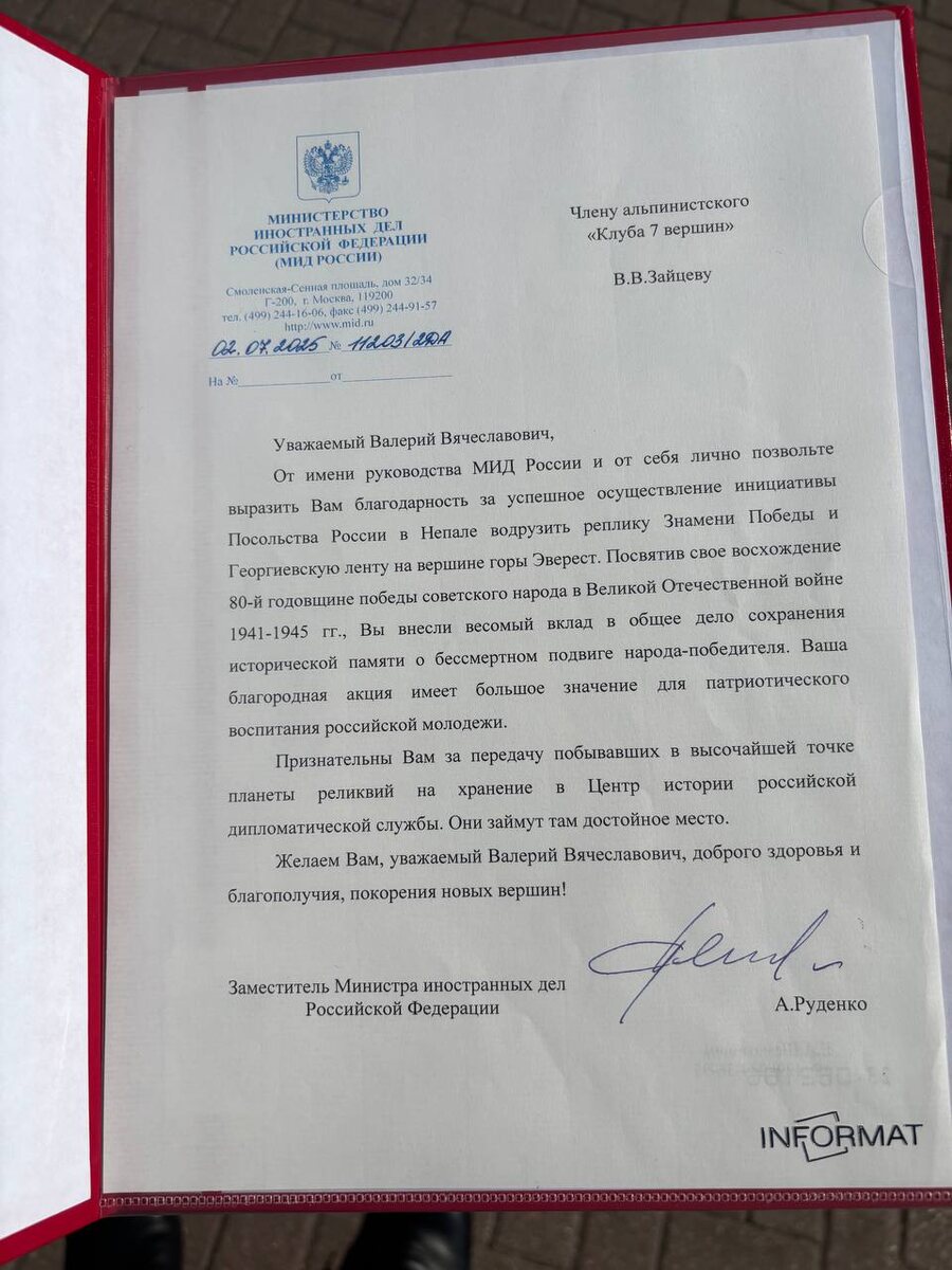 210. Вызвали в МИД Москва для вручения грамоты