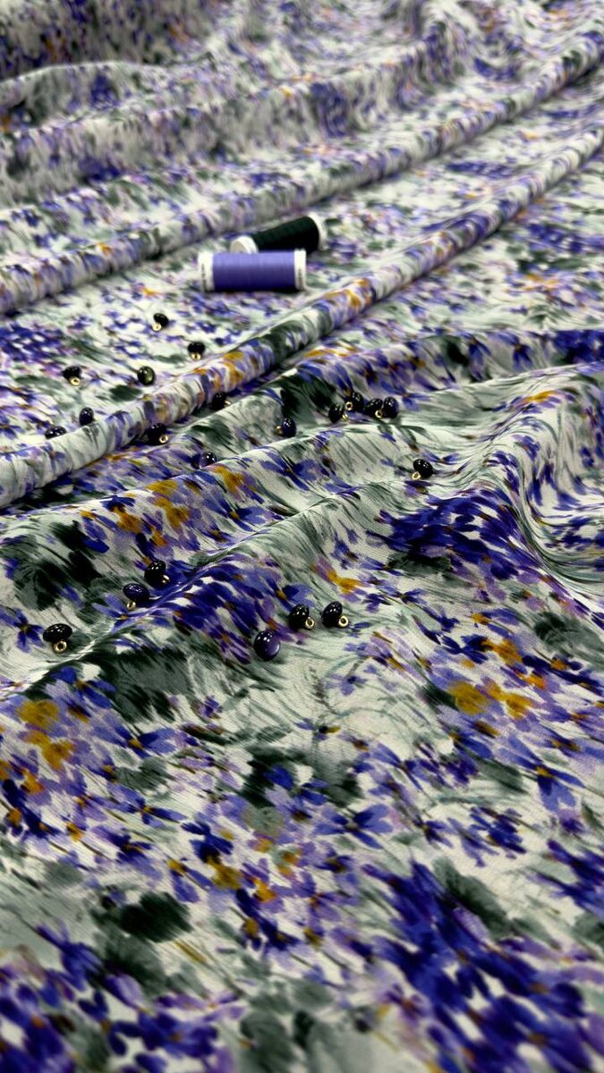 Легкий, воздушный, прекрасно драпируется. Идеален для пошива платья с рюшами, блузы, юбки и т.д. Состав: 100% шелк. Производство: Италия. Для вопросов и заказа пишите пожалуйста нам по этой ссылке: Ждём Вас ежедневно, с 10:00 до 20:00, по этому адресу: г.Москва, ул.Мневники, д.6, п.6