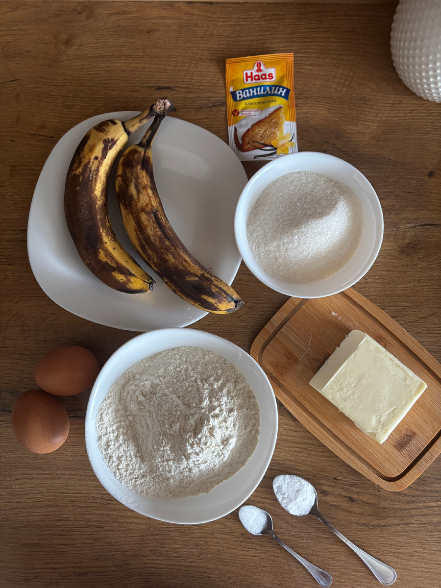 Всем привет! Это Оля) На днях обнаружила в холодильнике 2 черненьких банана) Уже и есть такие не охота, но и выкидывать жалко…. Вспомнила, что когда то пекла кекс с бананами и решила повторить))) Делюсь с вами рецептом. Итак, нам понадобятся: Для начала, в миске перетираем разогретое масло с сахаром. Разминаем банан вилкой и добавляем в миску. Туда же вмешиваем яйца. Затем добавляем соль, ванилин, просеянную муку и соду. Все перемешиваем до однородной массы и переливаем в форму смазанную сливочным маслом. Ставим выпекаться в духовку на примерно на 30 минут на 180 градусов. Кекс готов! Приятного аппетита!