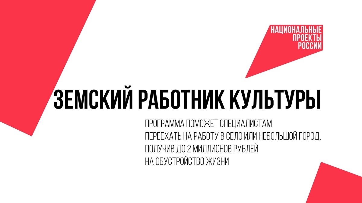 Программа «Земский работник культуры» дает возможность переехать на работу в село или небольшой город, получив до 2 миллионов рублей на обустройство жизни. Найти подходящую вакансию в библиотеках, домах культуры, музеях и детских школах искусств можно на сайте Минкультуры России - culture.gov.ru/about/zems...