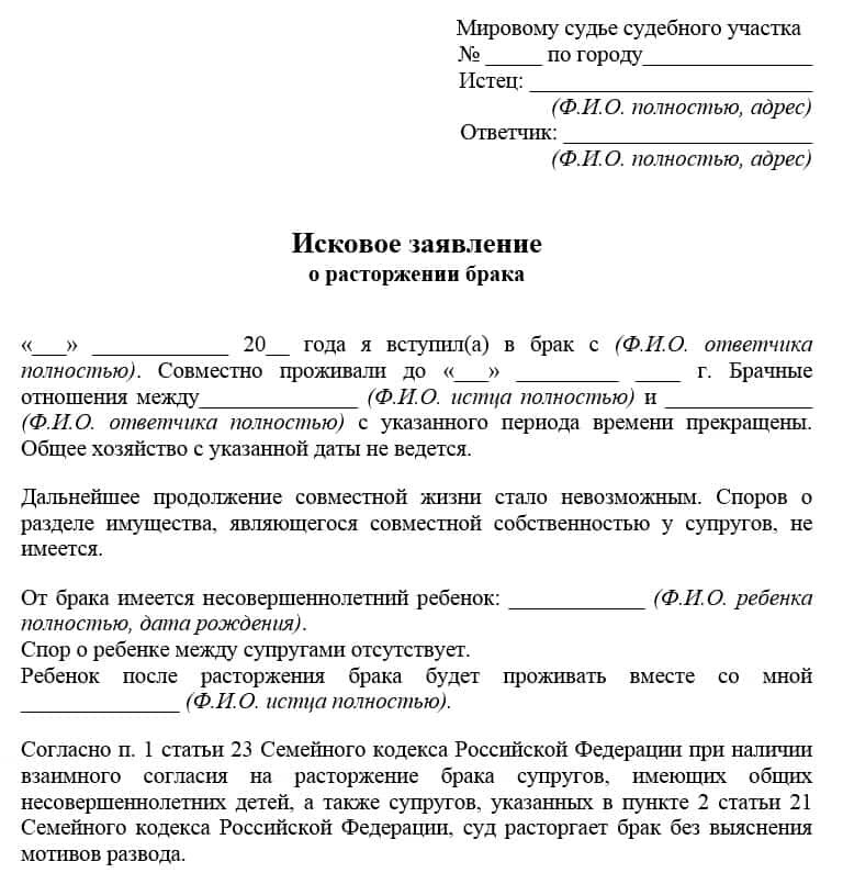 Заявление на расторжение брака через мировой судебный участок