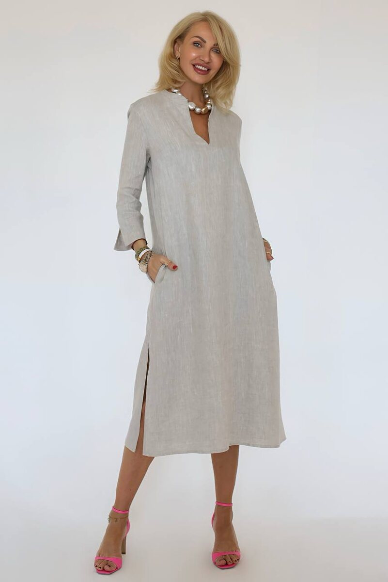 Платье с V-образным вырезом и карманами