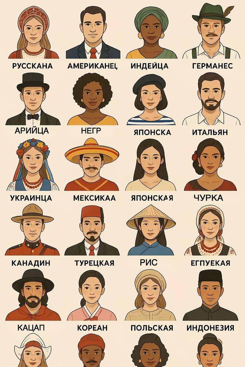 Национальности по мнению ChatGPT 😂 Выбирайте своего героя в комментариях 👇🏻