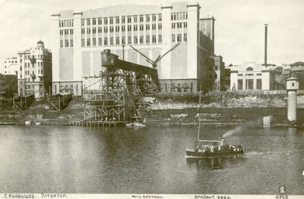 Самарский элеватор на фотографии представляет собой одно из ключевых сооружений города, служившего центром хлебной торговли Российской империи. Строительство элеватора велось в середине 1930-х годов силами заключенных как часть программы индустриализации. Эта постройка символизировала переход от купеческой торговли зерном к государственной системе хранения и переработки.