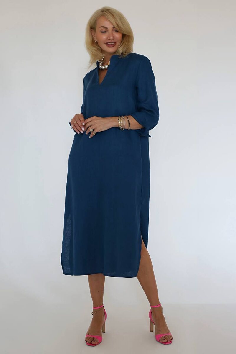 Платье с V-образным вырезом и карманами