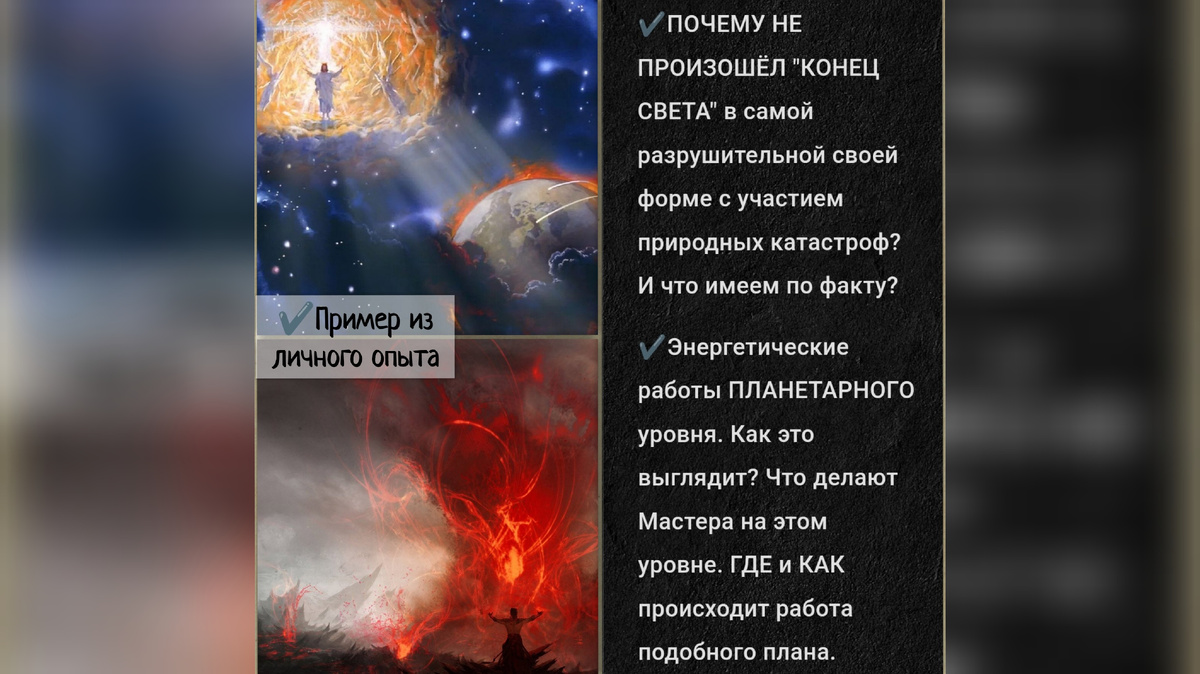 который должен был проявиться как цунами, вулканы, землетрясения, ядерные войны — был ПЕРЕВЕДЁН в чисто ЭНЕРГЕТИЧЕСКИЙ процесс и равномерно распередён.