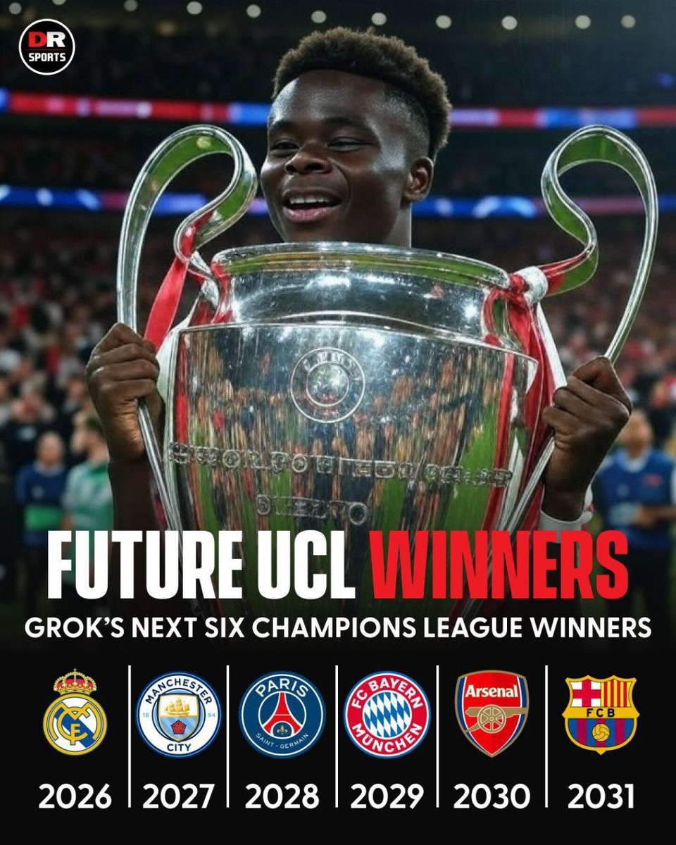 Будущие победители ЛЧ по версии нейросети Grok @мировой Футбол