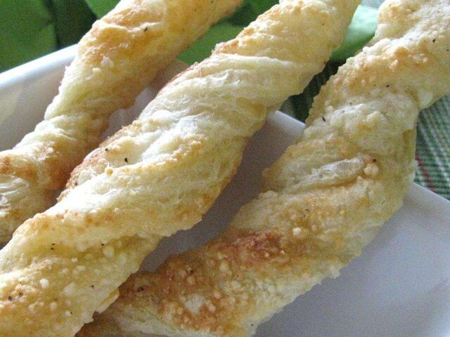 Хрустящие сырные твисты Они отлично подходят в качестве закуски или подаются вместе с блюдами! 🍴 Количество: 2 десятка Ингредиенты ✅ ½ чашки сыра пармезан ✅ 0.75 чайной ложки молотого черного перца ✅ ½ чайной ложки чесночного порошка ✅ 1 (550 гр) упаковка замороженного слоеного теста, размороженного ✅ 1 яичный белок Инструкция приготовления 1. Соедините сыр пармезан, перец и чесночный порошок. Разверните листы теста на разделочной доске. Слегка смажьте яичным белком; посыпьте каждый лист 1/4 частью сырной смеси. Слегка вдавите в тесто, переверните и повторите. Разрезать каждый лист на 12 (2.50 см) полосок; скрутить. 2. Положить на смазанный маслом лист для печенья и выпекать в духовке при температуре 175 градусов C в течение 15 минут или до золотисто-коричневого цвета. 📷 https://furshett.ru/uploads/zakuski-i-sneki/40907b9a-1b28-485e-88f4-41b71d5432a9.jpg 👌 Больше рецептов на Furshett.ru 👉 https://furshett.ru/zakuski-i-sneki/hrustyashchie-syrnye-tvisty-571479