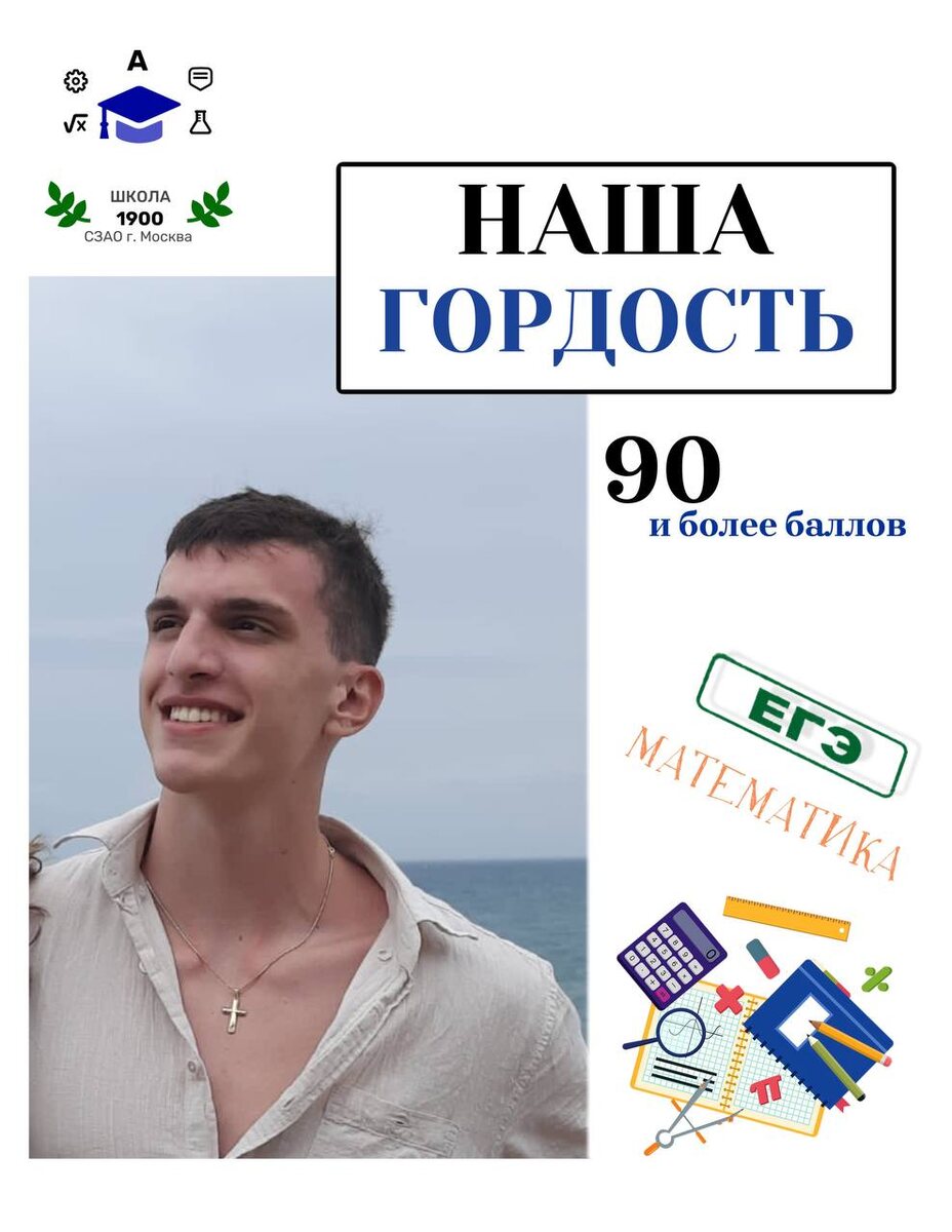 НАША ГОРДОСТЬ 📌Недавно были получены результаты ЕГЭ по математике, где многие ученики продемонстрировали выдающиеся достижения, набрав 90 баллов и выше. 🫠Мы гордимся нашим талантливым учеником Сандро из 11 "Б" класса, который сдал ЕГЭ по математике на 92 балла. Этот результат говорит не только о его усердии, но и о настоящей любви к точным наукам. 🫶За этими высокими баллами стоит кропотливая работа, дисциплина и, конечно, поддержка замечательного педагога — Юлии Николаевны Скочиловой. Спасибо вам за профессионализм и вдохновение, которые помогают в ученикам достигать таких высот. 😎Сандро доказал, что упорство и труд ведут к успеху. Желаем ярких побед и в будущем. Пусть этот результат станет ступенькой к новым достижениям! #ДОНМ #Школа1900 #НашаГордость