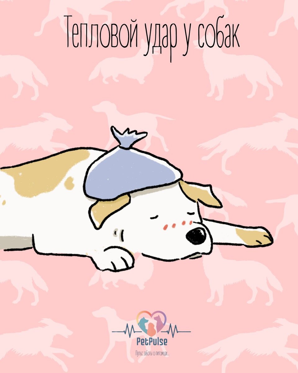 Тепловой удар — острое состояние, которое возникает при перегреве организма и может привести к серьёзным осложнениям и даже смерти питомца. Очень важно знать, как быстро распознать симптомы и оказать первую помощь. Симптомы теплового удара: Чем дольше воздействует патологический фактор на собаку, тем быстрее болезнь начинает приобретать более опасные симптомы: Породы с повышенным риском теплового удара: — Брахицефалические породы (мопсы, французы-бульдоги, английские бульдоги и др.) — Породы с длинной или густой шерстью (хаски, самоеды, ньюфаундленды) — Пожилые животные и питомцы с заболеваниями сердца или дыхательных путей Чек-лист первой помощи при тепловом ударе: 1. Быстро перенесите животное в прохладное, тенистое и проветриваемое место. 2. Снимите ошейник, одежду или другие предметы с питомца. 3. Осторожно охлаждайте тело влажной прохладной тряпкой — уделяйте внимание шее, животу и лапам. 4. Не обливайте животное ледяной водой и не используйте лёд — это может