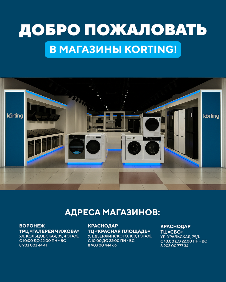 🌟 Друзья, спешим поделиться отличной новостью: мы продолжаем активно развивать свое присутствие в регионах России и открываем новые фирменные магазины Korting!🎉 Приходите к нам и наслаждайтесь широкими возможностями выбора качественной бытовой техники. Уверены, каждый найдет именно тот продукт, который сделает вашу жизнь комфортнее и приятнее! Подробнее: https://clck.ru/3MzgU3