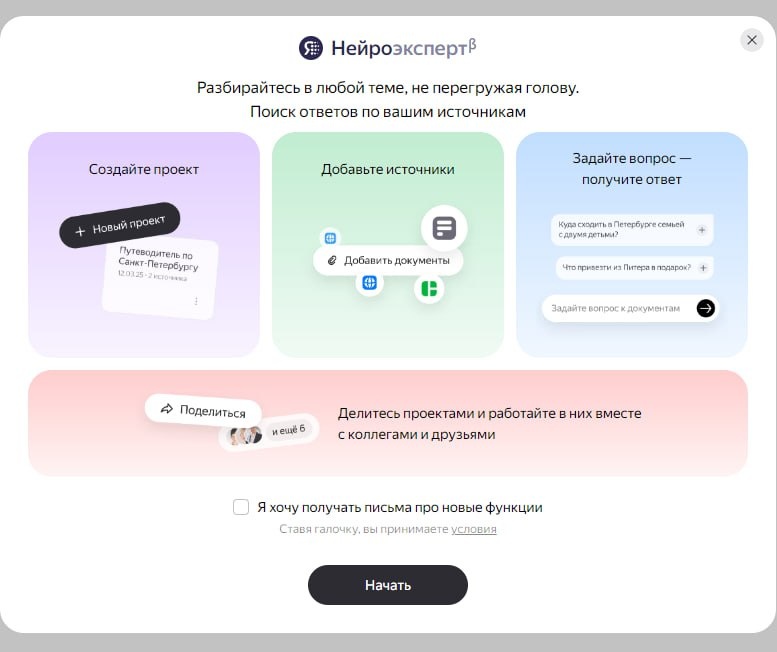 Сергей Подвысоцкий скинул новость про новую поделку Яндекса. Хотят войти в мир офисных работников 😀 «Яндекс» запустил умный помощник для офисных работников Компания «Яндекс» представила обновлённый сервис «Нейроэксперт» — помощника для работы с документами и сайтами. Это похоже на инструмент от Google, но он работает в России. Загружаешь базу знаний и получаешь ИИ-эксперта по теме. Что умеет сервис: * Анализировать информацию на сайтах * Работать с графиками и диаграммами * Извлекать главное из документов * Давать советы на основе изученных материалов Как это помогает в работе: * Помогает в стратегическом планировании * Упрощает сбор информации * Автоматизирует рутину * Помогает готовить материалы За время тестирования сервисом пользовались 350 000 человек в месяц. Чаще всего его применяли в образовании, юриспруденции, финансах, маркетинге и HR. Важные особенности: * Сервис создан специально для компаний * Оплата за него по подписке * На российском рынке аналогов почти нет (ибо