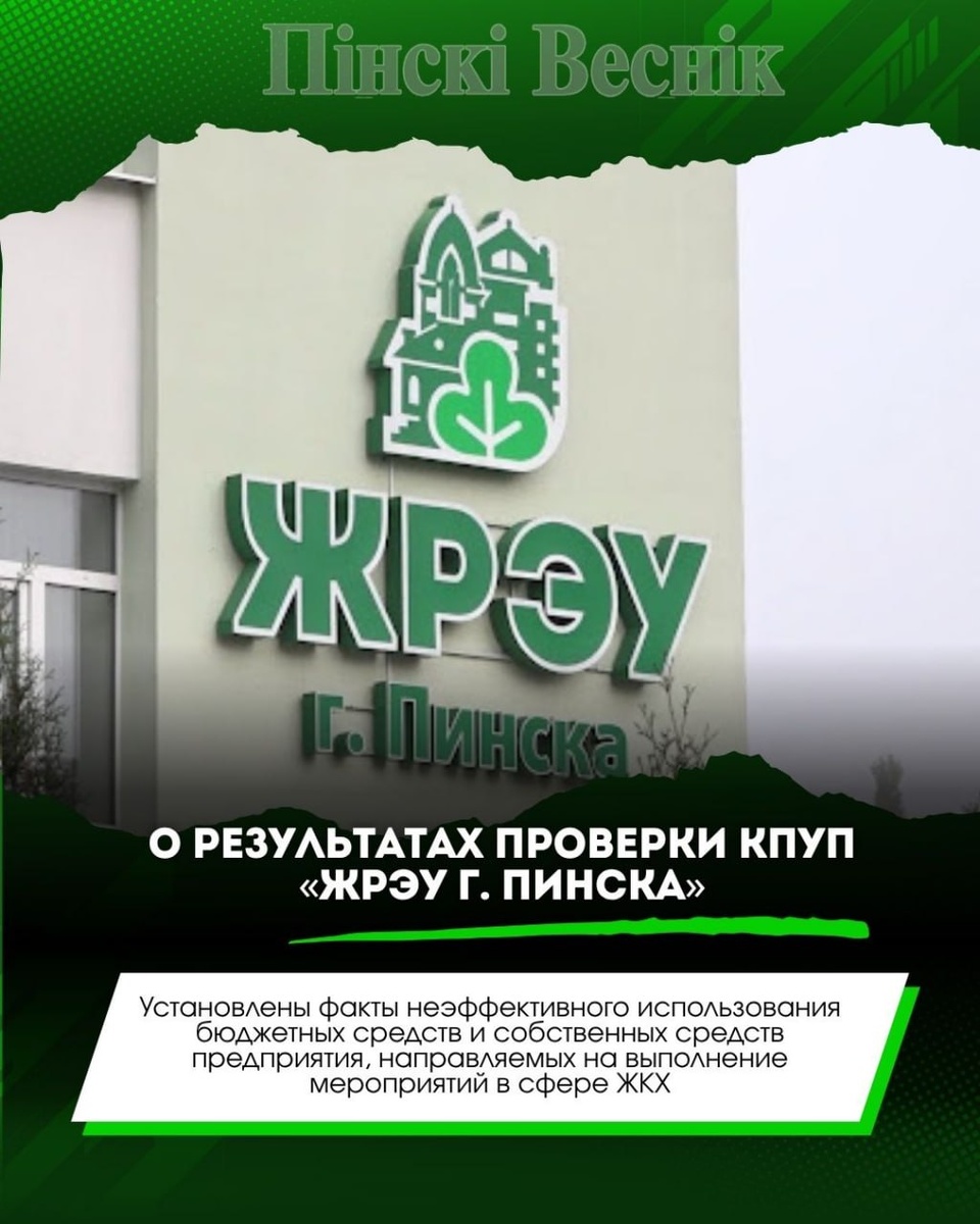 📌Жилищно-коммунальное хозяйство Республики Беларусь стремится улучшить качество услуг и условия жизни граждан, но в ходе проверки КПУП «ЖРЭУ г. Пинска» обнаружены серьезные проблемы. Установлены факты неэффективного использования бюджетных средств, завышенные тарифы на услуги по обращению с отходами и нарушения в бухгалтерском учете. ✔️Информация направлена в Пинский горисполком для принятия мер. Подробнее на https://p-v.by/all_news/ @Пинский Вестник ЮТУБ | САЙТ| ИНСТ | ВК | ОК | ФЕ | Прислать новость