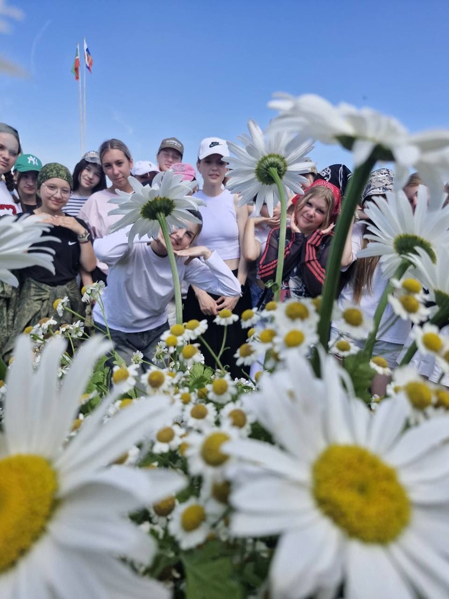 Вот так проходит в лагере Растим патриотов День семьи, любви и верности. Селфи с ромашкой 🌼🌸🌼.