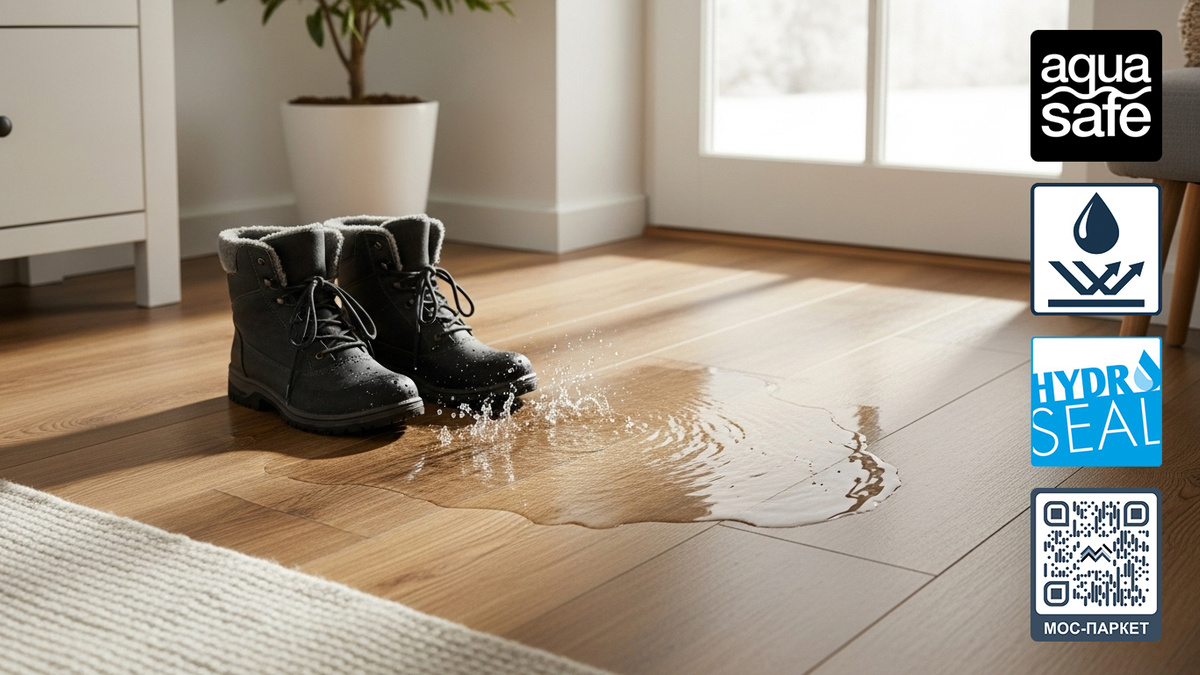 Ламинат уверенно занимает лидирующие позиции среди напольных покрытий благодаря прочности, удобству в укладке и разнообразию дизайна. Однако с ростом требований к комфорту всё чаще возникает вопрос: можно ли укладывать ламинат в помещениях с повышенной влажностью? Например, в кухне, прихожей или в квартире, где часто скапливается влага от мокрой обуви. МОС-ПАРКЕТ разбирается, что на самом деле означает водостойкость в ламинате, как выбрать действительно надёжный материал и какие коллекции сегодня лидируют в этом сегменте. Водостойкий ламинат — это не просто маркетинговая уловка. Это покрытие, которое прошло специальную обработку и может выдерживать прямой контакт с водой в течение заявленного времени — от нескольких часов до трёх суток. На рынке можно встретить множество названий технологий: AquaStop, Hydroseal, AquaSafe, Aqua Protect. Все они указывают на наличие влагозащиты, но по-настоящему важен не бренд технологии, а её эффективность. И именно здесь в игру вступает реальный показа