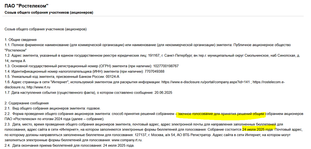 Практически закончился сезон годовых отчетных собрания публичных акционерных обществ 2025 года. Еще остались некоторые компании, которые их не успели провести, например, Ростелеком. Но они пройдут в заочной форме. Поэтому я решил подвести итог участия в годовых собраний акционеров, собрав ссылки в одном месте на все мои отчеты, а также присвоив рейтинг каждому собранию. Рейтинг складывается из 5-ти составляющих: Каждый фактор имеет свой вес. Максимальный вес у "Отчеты", "Коммуникация управляющих с акционерами", минимальный у "Подарков". В соответствии с оценками каждого фактора рассчитывается общий рейтинг. Ссылки на отчеты по порядку убывания рейтинга: Общий рейтинг - 9.42. Общий рейтинг - 8.30. Общий рейтинг - 8.18. Общий рейтинг - 7.18. Общий рейтинг - 7.18. Общий рейтинг - 5.38 Общий рейтинг - 4.23 Общий рейтинг - 4 Общий рейтинг - 3.92. Удачи и трезвого анализа в ваших инвестициях!!! P.S. Подписывайтесь на мой телеграмм-канал: