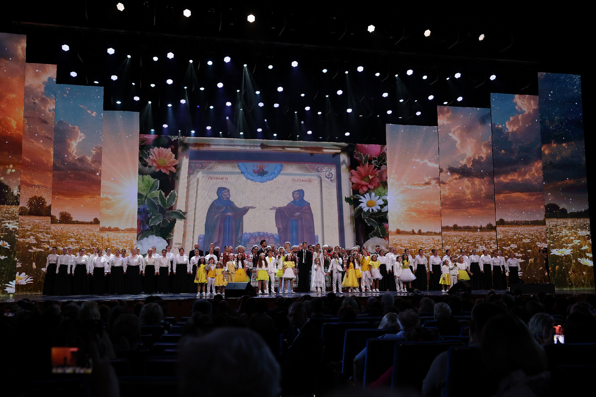 Хотя праздник этот, учреждённый Указом Президента РФ в 2022 году, ещё совсем молод, он пользуется популярностью и любовью у россиян и широко отмечается во всех регионах. В эффектном мультимедийном оформлении сцены в этот раз широко использовалось изображение нежных ромашек – именно этот цветок считается символом Дня семьи, любви и верности, поскольку в славянской традиции ассоциируется с чистотой, взаимными чувствами, семейным теплом, супружеским счастьем и материнством. И, конечно же, нашёл этот образ и своё музыкальное воплощение: в самом начале вечера, при поддержке театра танца Аллы Духовой TODES, на сцену вышла Татьяна Куртукова с песней «Ромашка-Василёк» П.Андреева. Впрочем, ей предшествовали три символические, знаковые композиции: исполненный группой солистов и несколькими коллективами, включая Государственный академический Кубанский казачий хор «Гимн Петра и Февронии» В.Усланова – Е.Андреевой, «Главное – семья!» Ирины Дубцовой, которую представила автор, а также «Родная земля» В.Добрынина – Л.Дербенёва в исполнении народного артиста РСФСР Льва Лещенко и Детского музыкального театра «Домисолька».