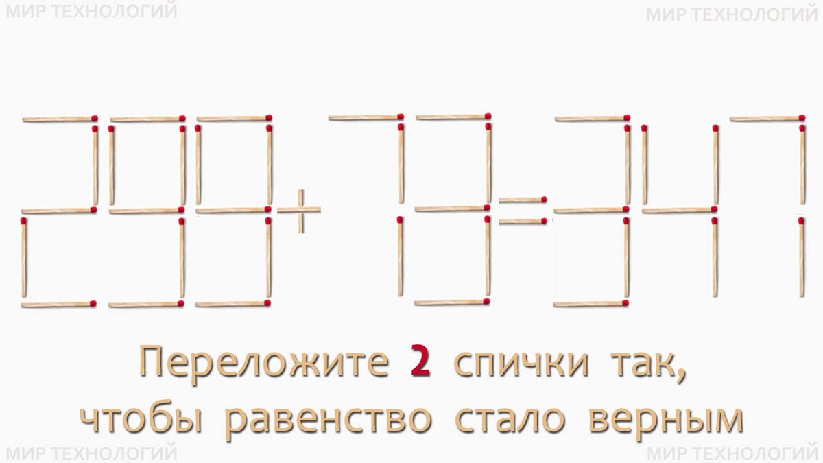 Задача со спичками № 557 (299+73=347) - переложите 2 спички так, чтобы равенство стало верным