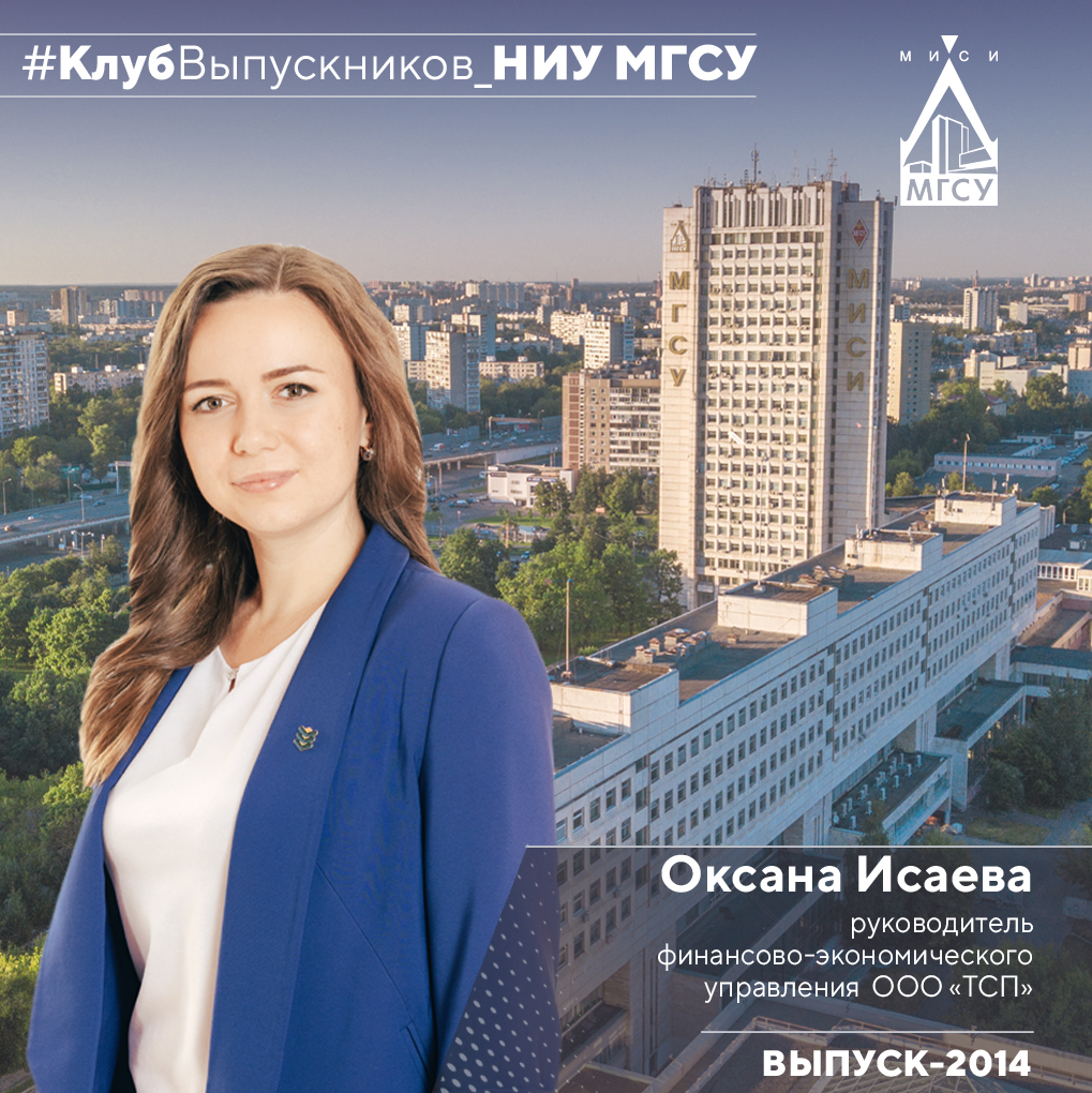 Оксана Исаева, выпускница НИУ МГСУ и руководитель финансово-экономического управления компании «ТСП», успешно прошла два отборочных этапа V Всероссийского конкурса управленцев «Лидеры строительной отрасли», об этом сообщает «Строительная газета». Из более чем 23,5 тысяч участников со всей России, а также Сербии, Турции и Египта, она вошла в число 300 полуфиналистов. Оксана – яркий пример успешной карьеры, построенной на фундаменте, заложенном в стенах нашего университета. В 2014 году она окончила НИУ МГСУ с отличием, получив красный диплом бакалавриата по профилю «Менеджмент организации» и красный диплом магистратуры по профилю «Девелопмент в инвестиционно-строительной деятельности». Более того, в течение двух лет Оксана передавала свой опыт и знания студентам НИУ МГСУ, преподавая на кафедре «Менеджмент организации». В компании «ТСП» Оксана Исаева руководит командой из восьми человек, каждый из которых также является выпускником НИУ МГСУ. Компания активно сотрудничает с нашим универси