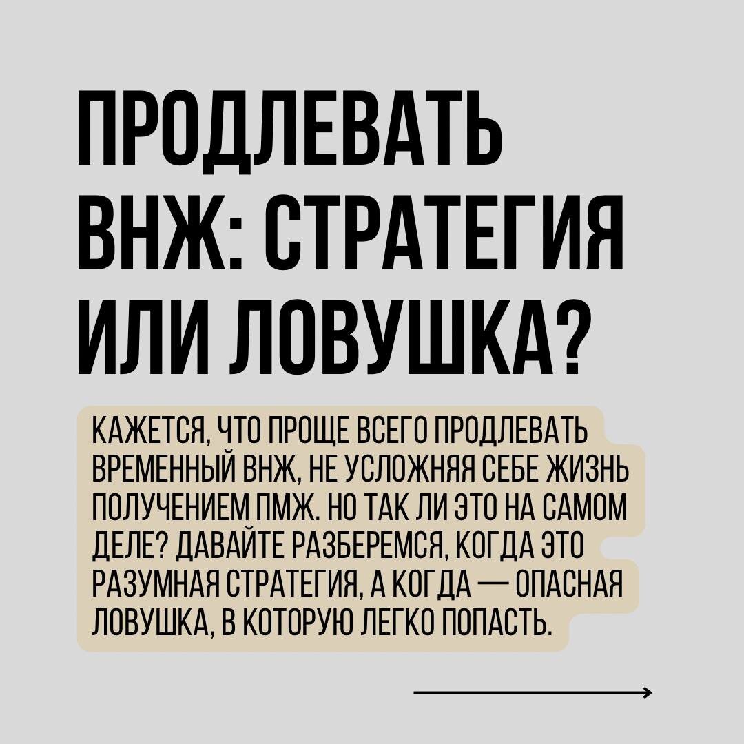Продлевать ВНЖ стратегия или ловушка? Кажется, что проще всего продлевать временный вид на жительство, не усложняя себе жизнь получением ПМЖ. Но так ли это на самом деле? Давайте разберемся, когда это разумная стратегия, а когда — опасная ловушка, в которую легко попасть. Листай карусель➡️ 🎁Забрать подарки или задать вопрос Записаться на консультацию здесь👇🏻 🌐сайт ✈️Telegram 💬WhatsApp