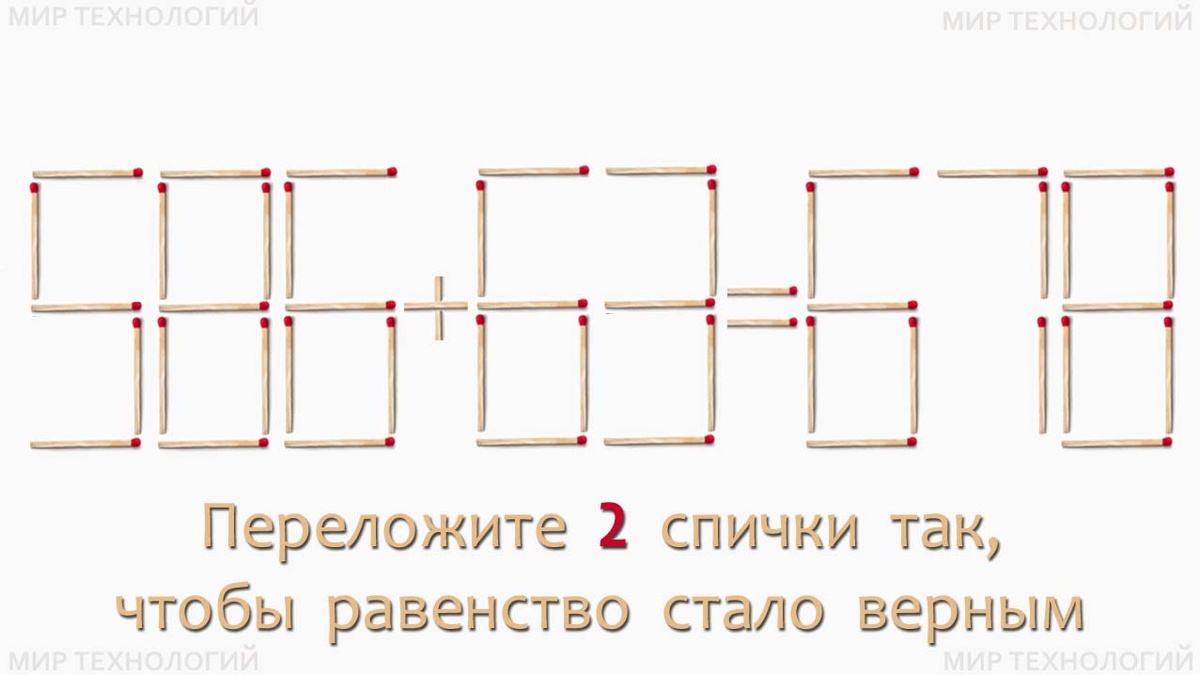 Задача со спичками № 561 (586+63=678) - переложите 2 спички так, чтобы равенство стало верным