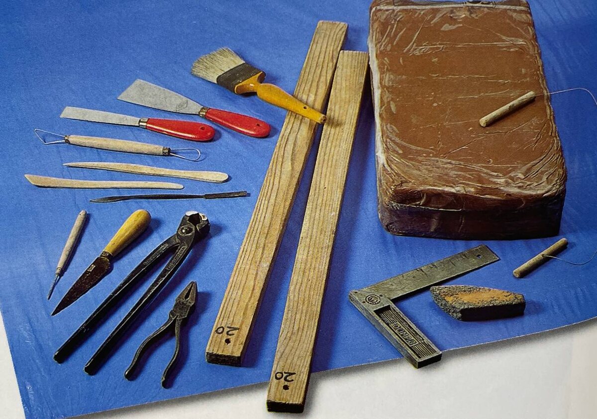 Рельефные мозаики не очень распространены, так как обычно мозаики бывают плоскими, но это не значит, что нельзя их сделать рельефными. Самое главное в этой работе - смоделировать рельеф, оставив в нем углубления, в которые впоследствии будут вставлены тессеры. В результате получится объем, контрастирующий с цветом тессер. Показываем рельефную мозаику, созданную мозаичистом Хоаким Чаварриа, фотографии и описание процесса работы взяты из его книги "Мозаика". Инструменты и материалы необходимые для работы: железосодержащая глина, кисть, шпатели, деревянные бруски, стеки для моделирования, струна для разрезания глины, линейка и петля. Первым этапом нужно подготовить глину к работе, разрезать и при помощи шпателя и угольника, а также вручную, смоделировать небольшие рельефы, которые впоследствии будут укрепляться на основе глины. Рельеф практически смоделирован, оставлены углубления для тессер. Торцом деревянного бруска можно сделать нажимы на рельеф, в результате чего образуются небольшие