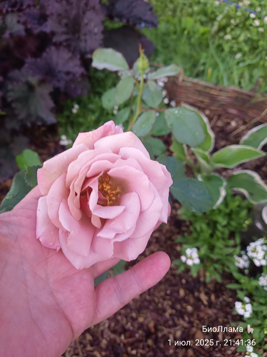 В моем новеньком цветнике продолжают показывать себя новые розы. Коко Локо никак не даётся телефонной камере. Первый цветок показал очень необычный красивый цвет пыльной розы с оттенком какао и лаванды одновременно. Второй ее цветок получился ещё крупнее и красивее. Я её уже очень люблю! Наконец расцвела ещё одна кофейная роза. Она так и называется - кофе. Но бутон был просто бело-сливочный. Как у транквилити! Смотрите, вот чисто сливочная транквилити: А вот чисто сливочная кофе! И бутон смотрит вниз и всё никак не хочет раскрываться. Но вот он, наконец, распустился! И я поняла, в чем секрет. Это не черный кофе, это латте в сливочной пенке. Мой любимый кофе. Вот забавница. Теперь на очереди Александра Кентская, и уже будет всё понятно с этим цветником. А я уехала в город. Соскучилась по спокойной городской жизни. Когда идёшь мимо сорняков и не надо их выдёргивать!!! Да и сад пусть отдохнёт от меня. И от котика, который там шороху навёл. Ночью он открыл окно и вырвался на охоту. Все