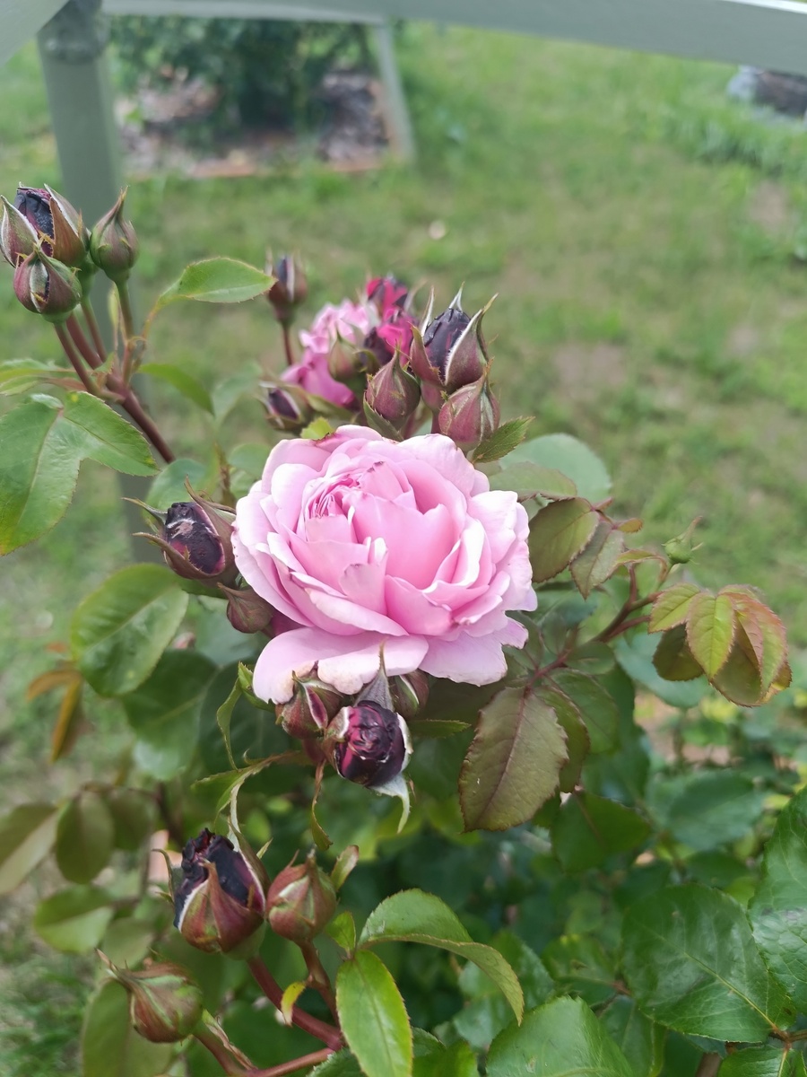 Ой, ну и сезон! Какая весна дурная: то +28 в апреле и все пустилось в рост, то мороз до -5-7 в начале мая и все что могло замерзло и так в два захода. И потом холодный и сухой май и большая половина июня с редкими, не убедительными дождями. Не удивительно, что нет в этом году ни ягод, ни цветения много чего, однако розы выстояли! И это на второй год жизни в моём саду, первая зимовка. Очень я рада! Нельзя назвать цветение фееричным, но мне не терпится похвастаться. Как розы попали в мой сад и первый год роста, про опоры для роз я писала вот здесь Как розы, полученные в этом году, поживают, был ли пересорт и как мечты сбываются Сегодня только розы и только фото. Дитер Мюллер. Категория: шрабы (парковые) Dieter Muller (Delbard, 2004). Ландлуст, Категория: Шрабы (парковые), Landlust (W. Kordes Sohne 2015) клаймбер Aloha (Kordes. 2003).. клаймбер Флорентина. Florentina (W. Kordes & Sons, 2011) И первая роза в моём саду, постарше других будет Ютерсен Клостеррозе плетистая, Тантау Нельзя ска