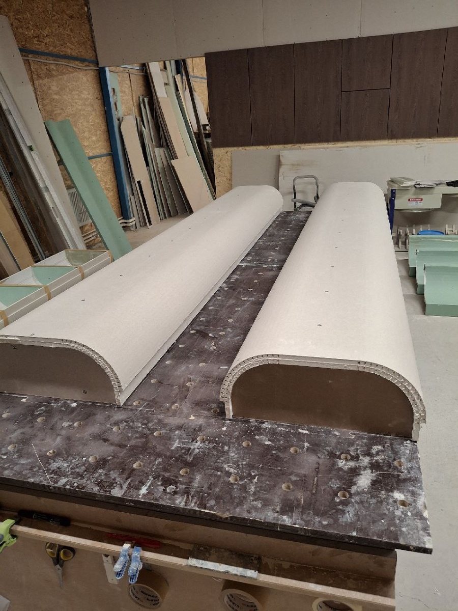 ✨ Готовы радиусные короба из двойного гипсокартона! ✔️ Качественное изготовление ✔️ Идеальные плавные изгибы ✔️ Повышенная прочность за счет двойного слоя Завтра отправляем на объект. 📩 Нужны радиусные конструкции? Пишите – сделаем!