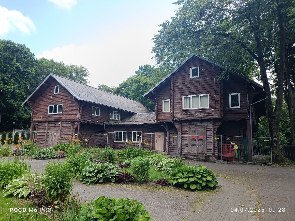 В Центральном парке Калининграда есть неприметное деревянное здание. Оно стоит как бы на отшибе, огорожено сигнальной лентой и забором с предупреждающими надписями. Дом этот аварийный. Но знавал лучшие времена. Начнём с того, что приехал он в парк с востока области и считается...замком. Деревянный охотничий замок был построен в Роминтенской пуще в 1891-1893 годах по приказу кайзера Вильгельма II. В советское время часть строения переехала в Калининград и это не первый его переезд. Само здание было построено в Норвегии, разобрано и доставлено морем в Кёнигсберг. Из порта до места строительства части замка перевозились по железной дороге и далее на лошадях. Далее строение возрузили на фундамент из тёсаных камней.